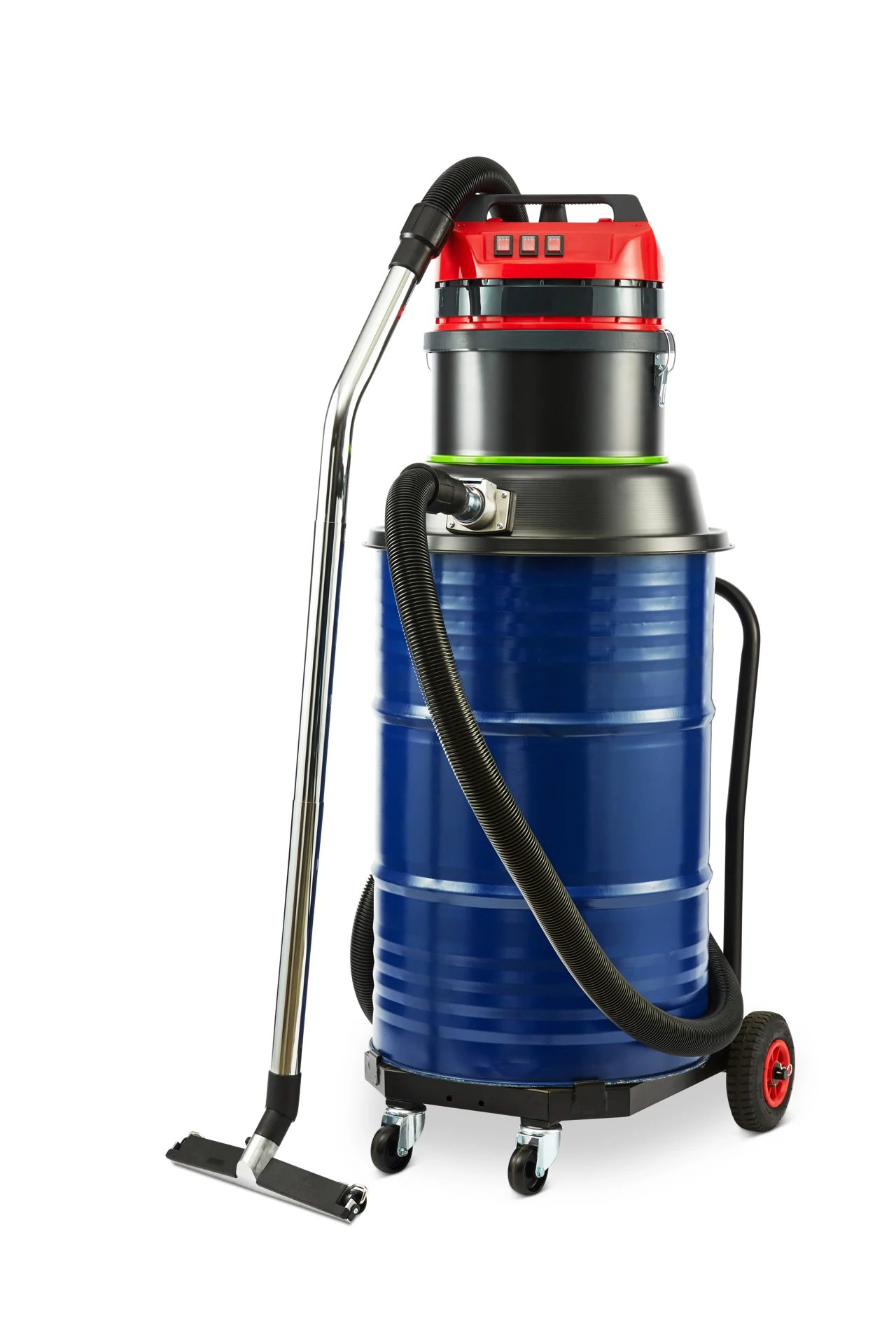 - Powerful triple motor vacuum head system Huge 200L drum on a heavy duty trolley