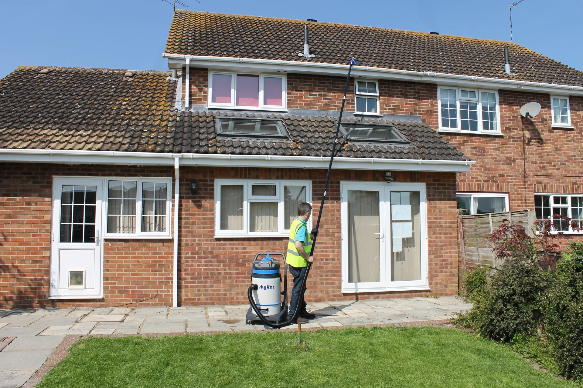 The Skyvac Industrial 85 quickly eats away at moss, mud and debris that builds up over time in gutters, making it ideal for heavy duty use on domestic and commercial properties, retail outlets, factories, schools, offices and hospitals. Removing the need for ladders, scaffolding and cherry pickers (which are time consuming and OH&S risks), the SkyVac gutter vacuum system allows work to be carried out at extreme heights by simply attaching the relevant poles and nozzles to the vacuum hose.