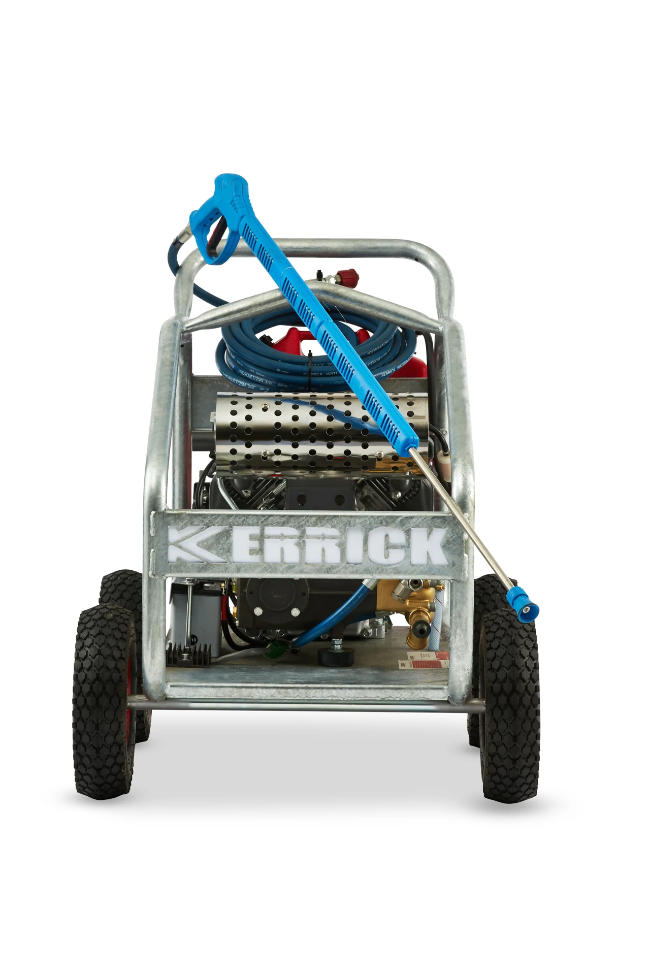 The unit has a GX690 Honda electric start engine coupled with an Italian low speed pump on a heavy duty hot dipped galvanized frame, as well as 4 12" pneumatic wheels giving fantastic manoeuverability over rough terrain. This water blaster is manufactured in Australia to meet the high standards of professional contracting, building and plumbing industries. The quality componentry that make up these water blasters mean they are built to last and can handle heavy duty use associated with these industries. Kerrick can custom-build these pressure cleaners up to 200 litres+ per minute that can be skid, trailer, truck or ute mounted.