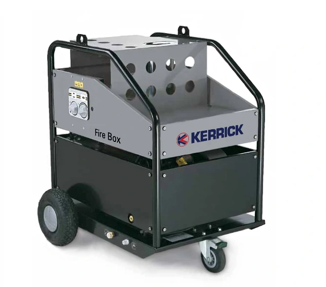 Features include: A double turn coil made from steel tubing, treated with high temperature paints; New high efficiency, long life, weld-free boiler manufactured completely in stainless steel; and an electric control panel with on-off switch and thermostat. The cover and trolley are made from painted sheet metal and the Firebox 350 has great safety devices such as a check valve, safety valve, and flow meter to check for the absence of water. This unit has popular applications in agriculture, industrial manufacturing and also construction. *Colour may vary.
