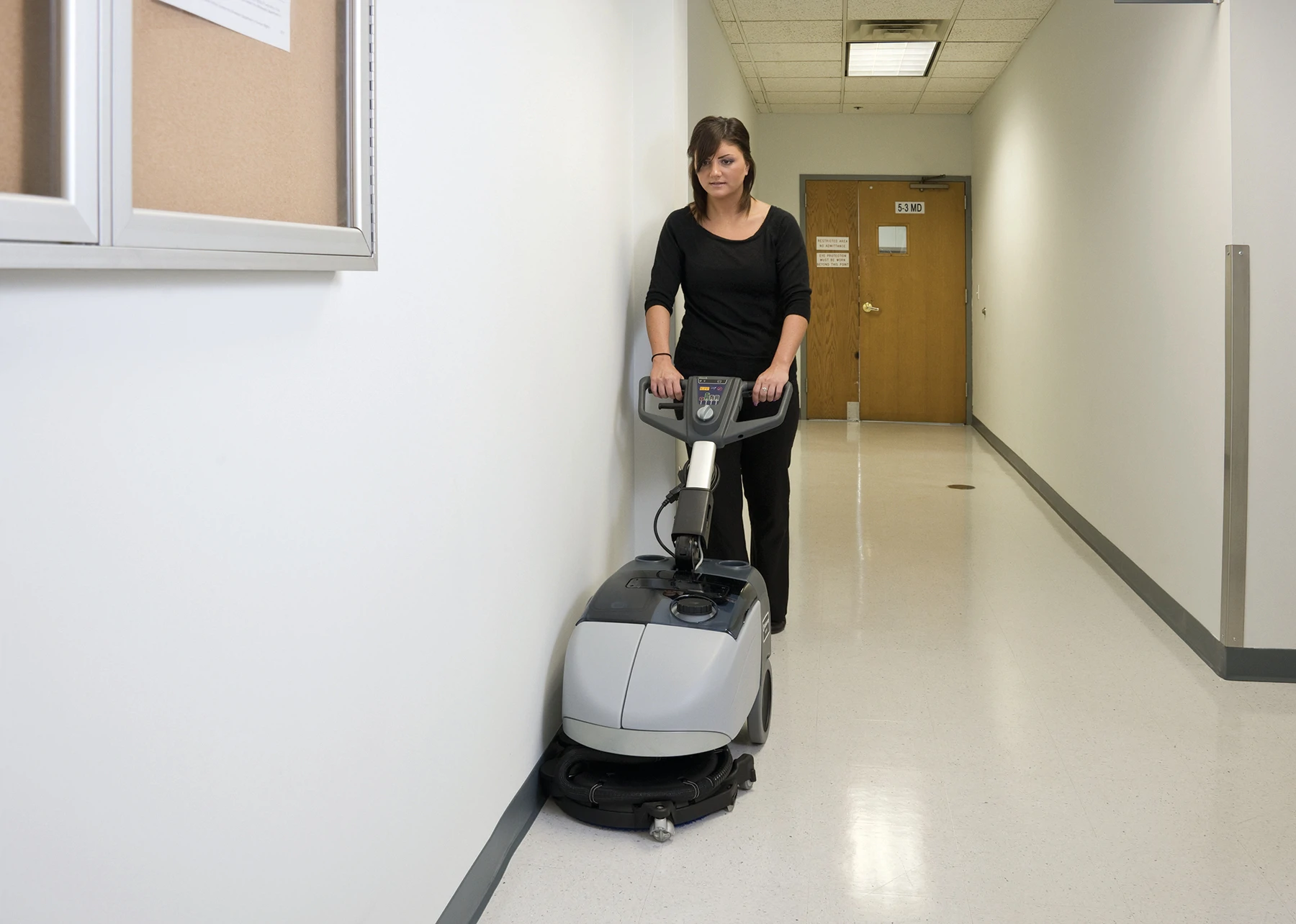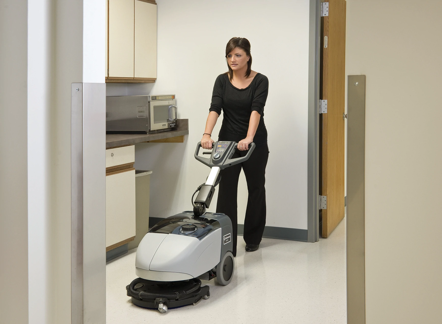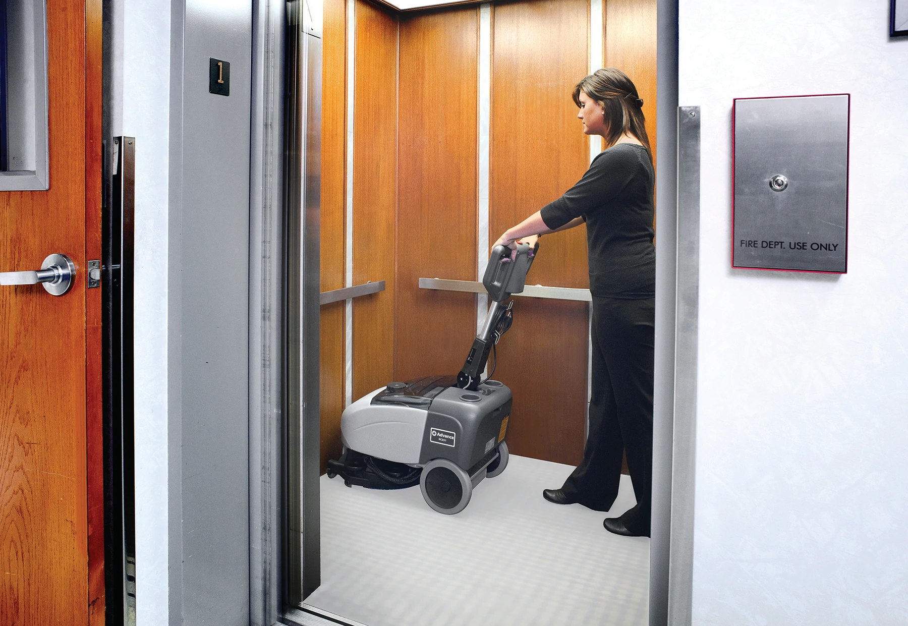 The battery-powered Nilfisk SC351 walk-behind micro scrubber delivers fast and effective single-pass hard floor cleaning and drying for small spaces. This compact floor cleaning machine was designed for daily cleaning in small areas and crowded places, such as in tight corners and around tables, shelves, and furniture. It’s the quietest machine in its class and the AGM maintenance-free battery provides up to 100 minutes of scrub time on a single charge.The battery-powered Nilfisk SC351 walk-behind micro scrubber delivers fast and effective single-pass hard floor cleaning and drying for small spaces. This compact floor cleaning machine was designed for daily cleaning in small areas and crowded places, such as in tight corners and around tables, shelves, and furniture. It’s the quietest machine in its class and the AGM maintenance-free battery provides up to 100 minutes of scrub time on a single charge.