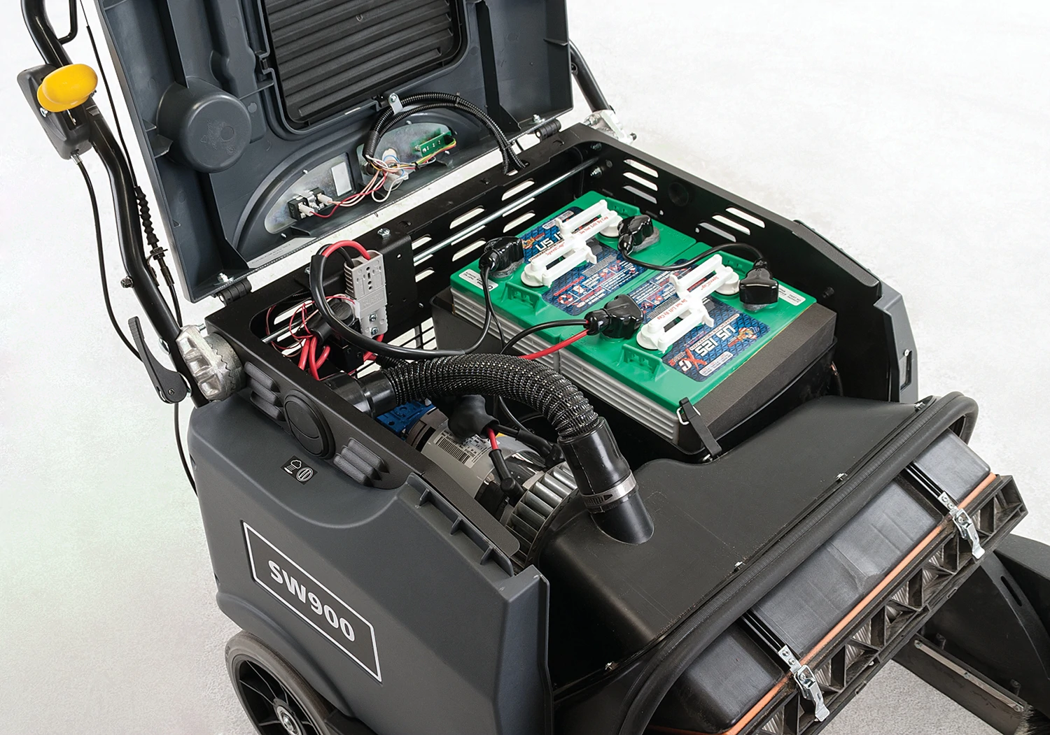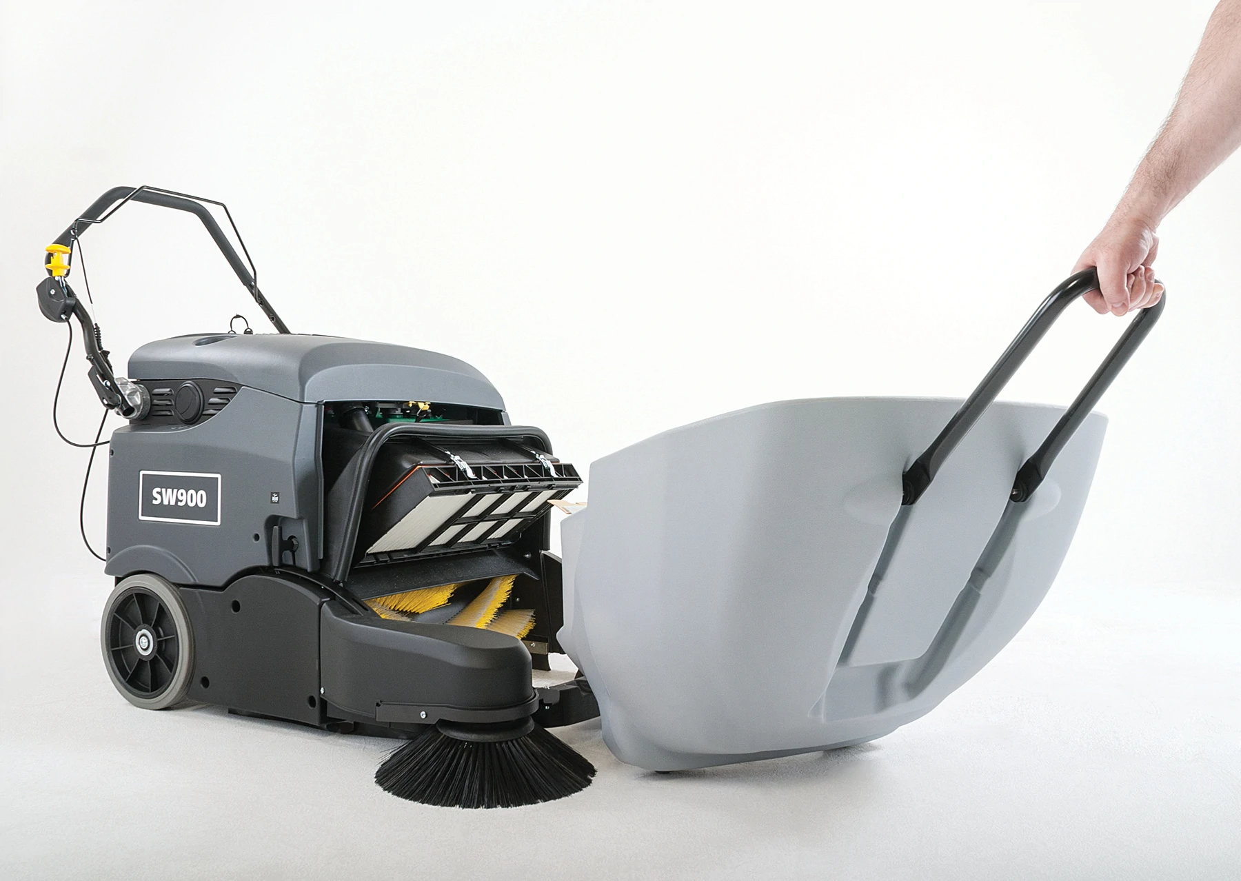 The SW900 is an ideal sweeper for cleaning contractors, industry and manufacturing, schools, warehouses, hotels, exhibitions, and convention centers.