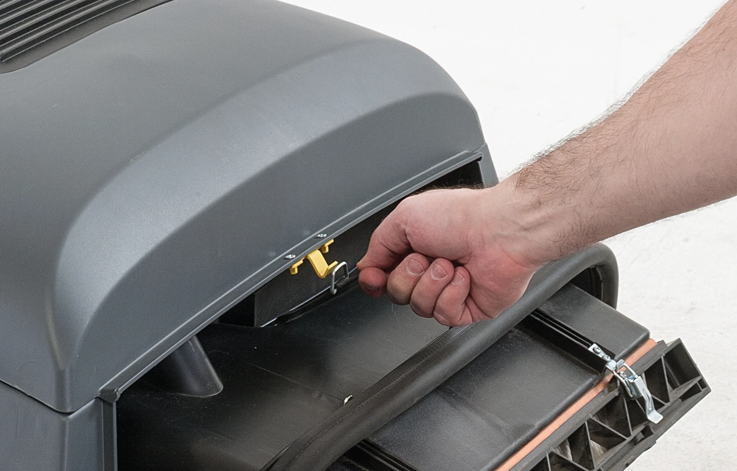 - Large capacity hopper is lightweight with durable corrosion proof design