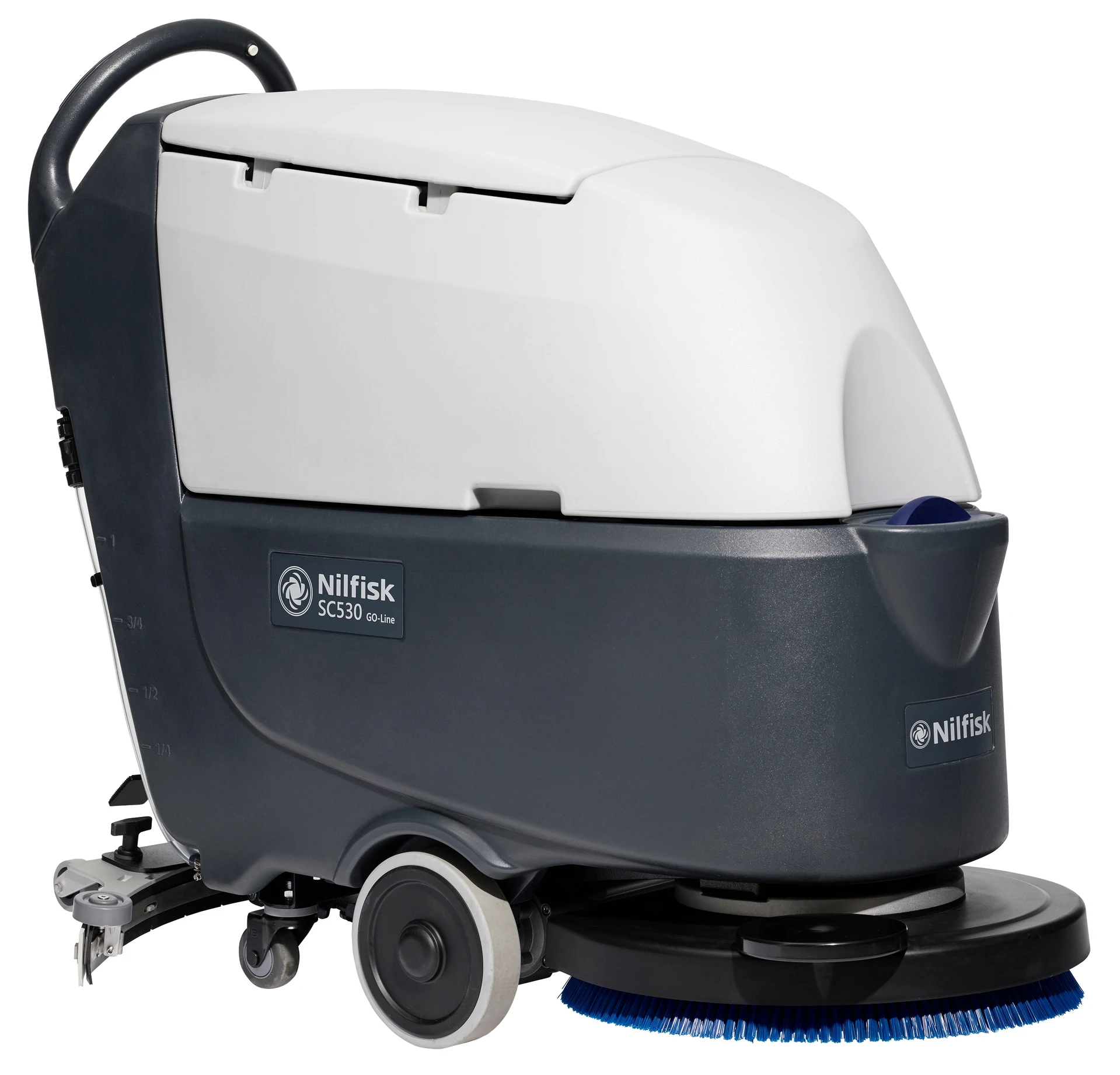The SC530 is a simple, trustworthy and cost-effective scrubber dryer and the perfect choice for applications such as schools, hospitals, supermarkets and public buildings, as the SC530 allows to cover big areas reducing time and increasing productivity thanks to its 61 litre tank capacity.