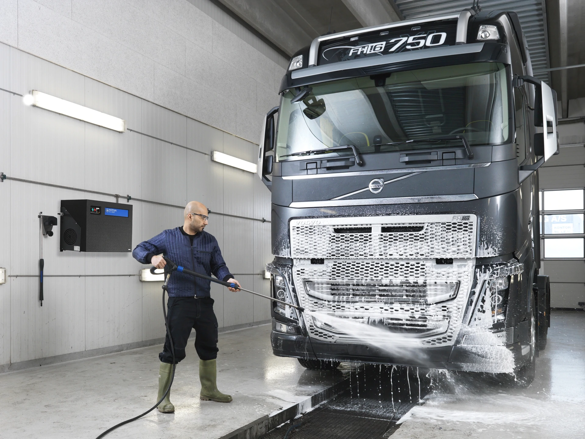 - The industrial pumps make it possible to feed the units with hot inlet water from 70°C (with break tank) to 85°C (direct feed) for max. cleaning efficiency