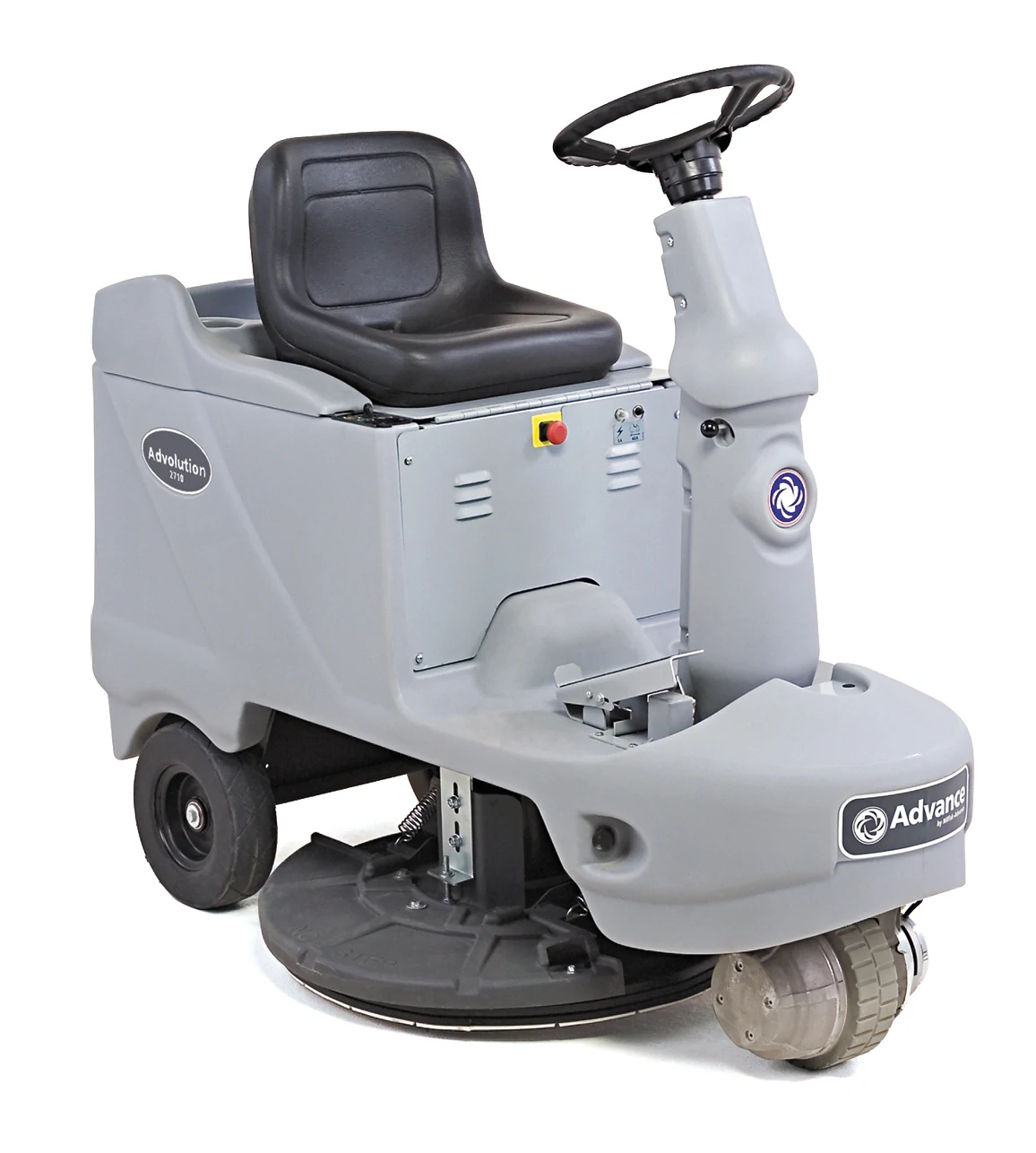 Our Advolution™ 2710 battery-powered rider burnisher makes large-area floor polishing easy, comfortable and productive. This machine is an ideal floor buffing solution for airport terminals, shopping centers, hospitals and more.