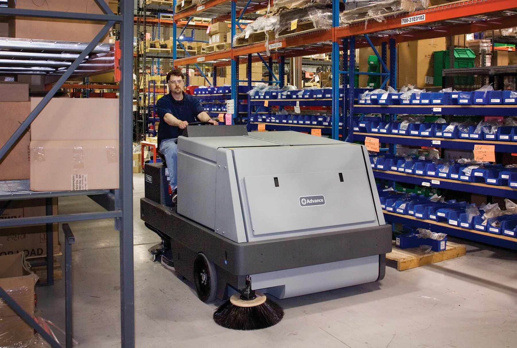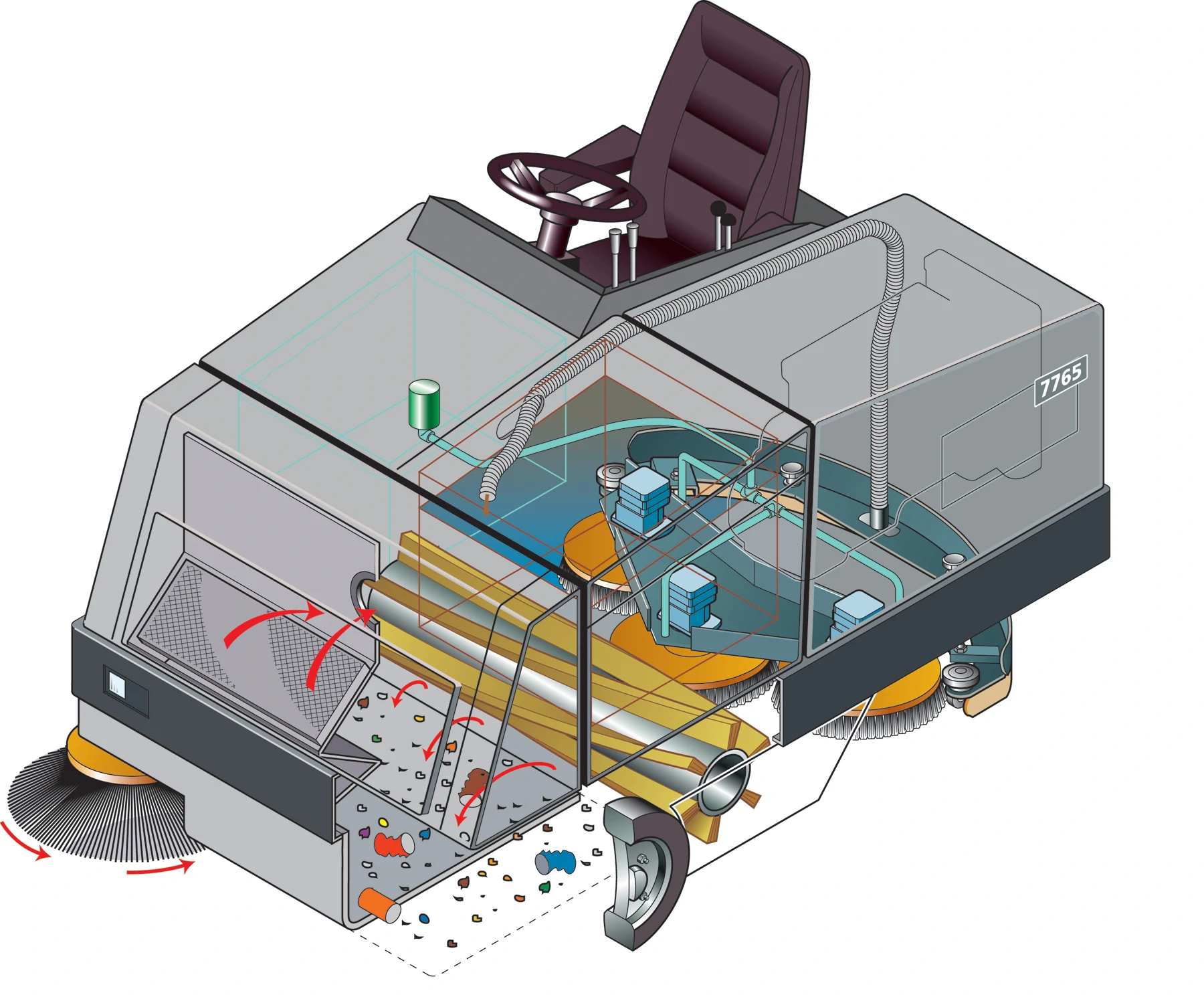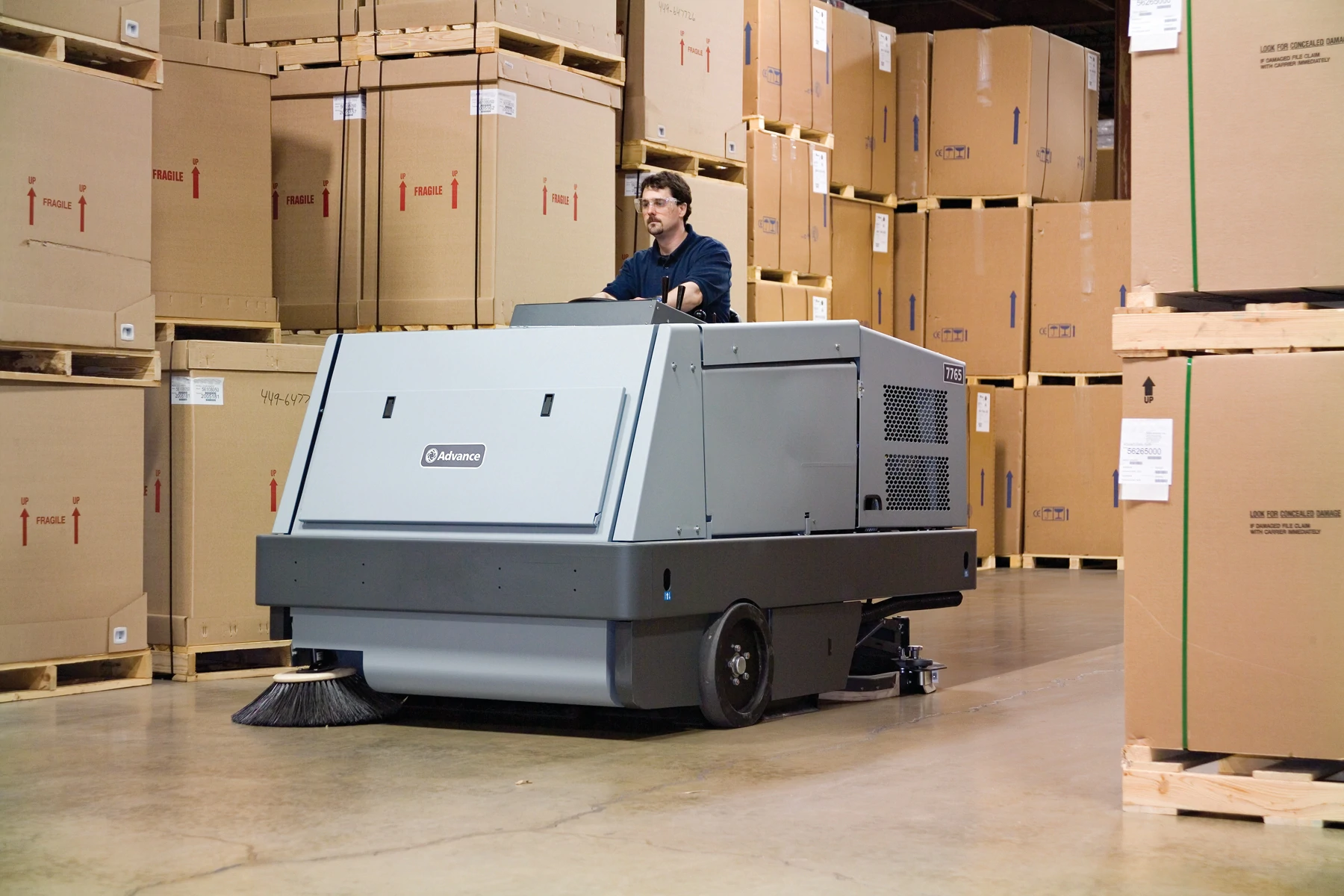 The 7765™ Industrial Rider Sweeper-Scrubber is two machines in one, with an independent dry sweeping system that picks up dirt and debris before the scrubbing brush aggressively cleans the dirtiest floors, all in a single pass. Take on the toughest cleaning jobs with confidence.