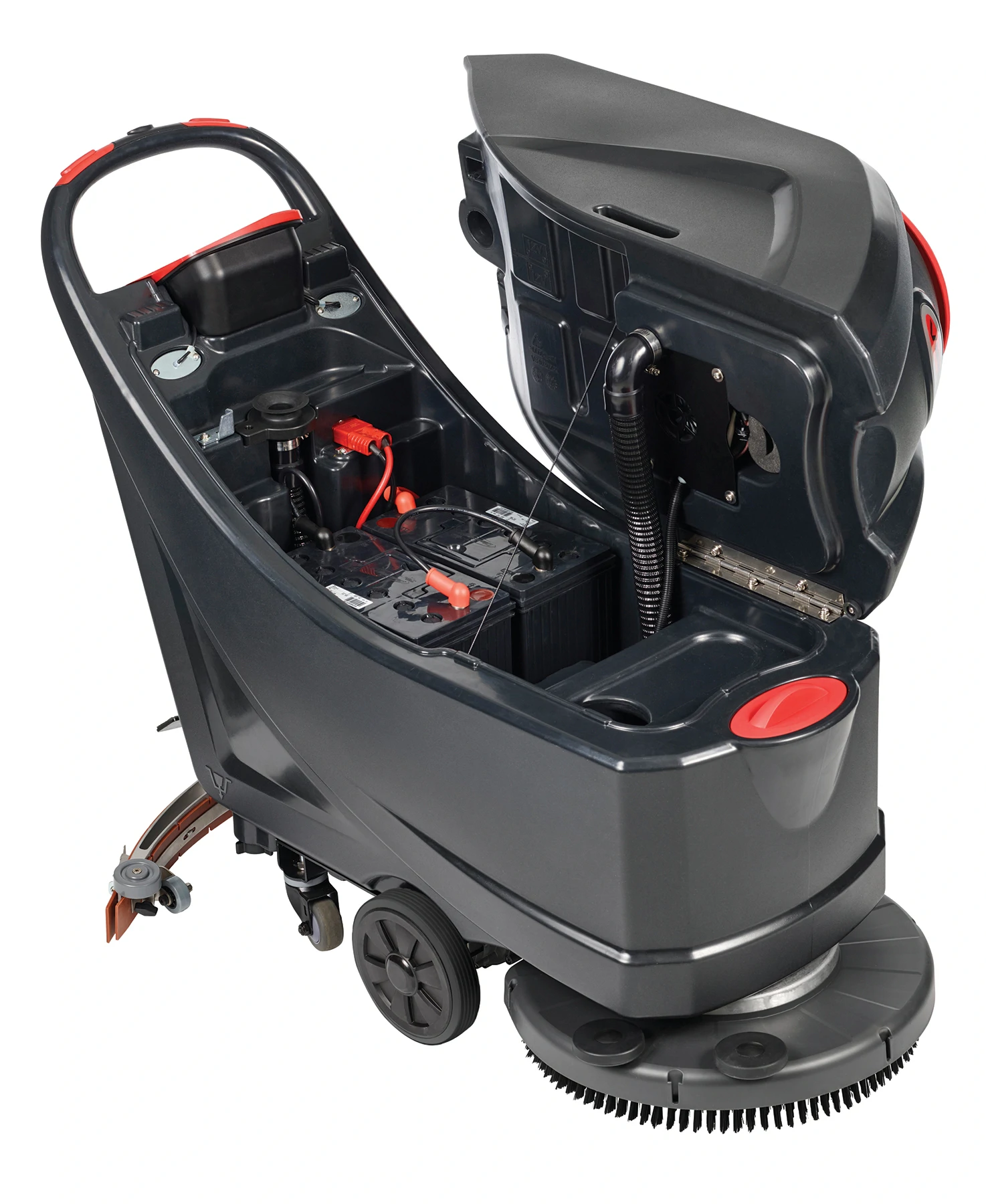 - Orbital version offers water and detergent savings, with traction drive, and automatic raising and lowering of the scrub deck.