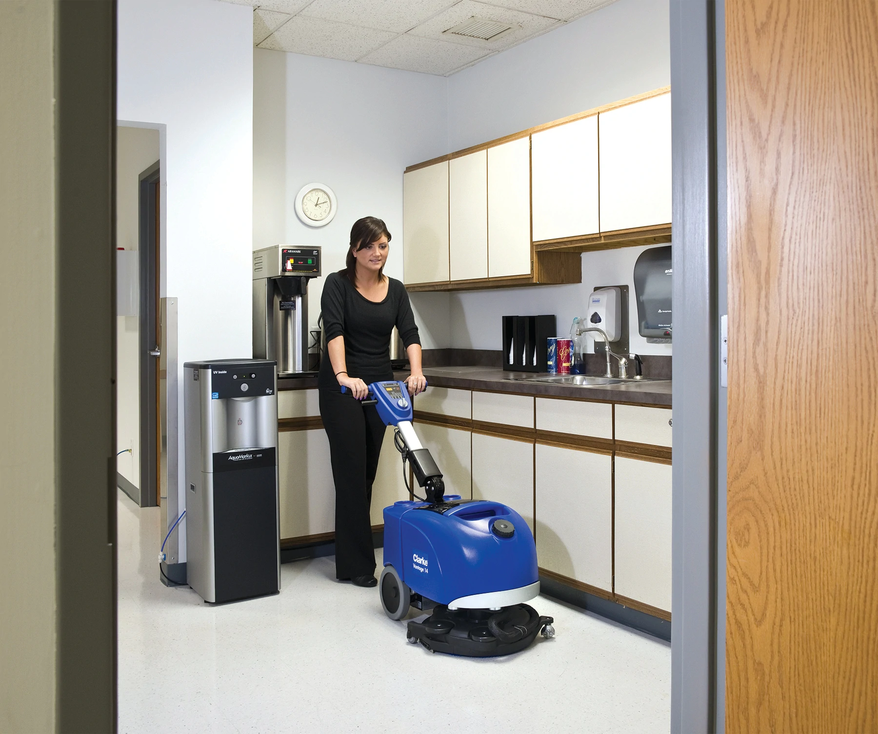 Combining rugged reliability and innovative performance, the Clarke® Vantage 14 Micro Scrubber marks a breakthrough in everyday scrubbing for small, hard-to-clean areas.