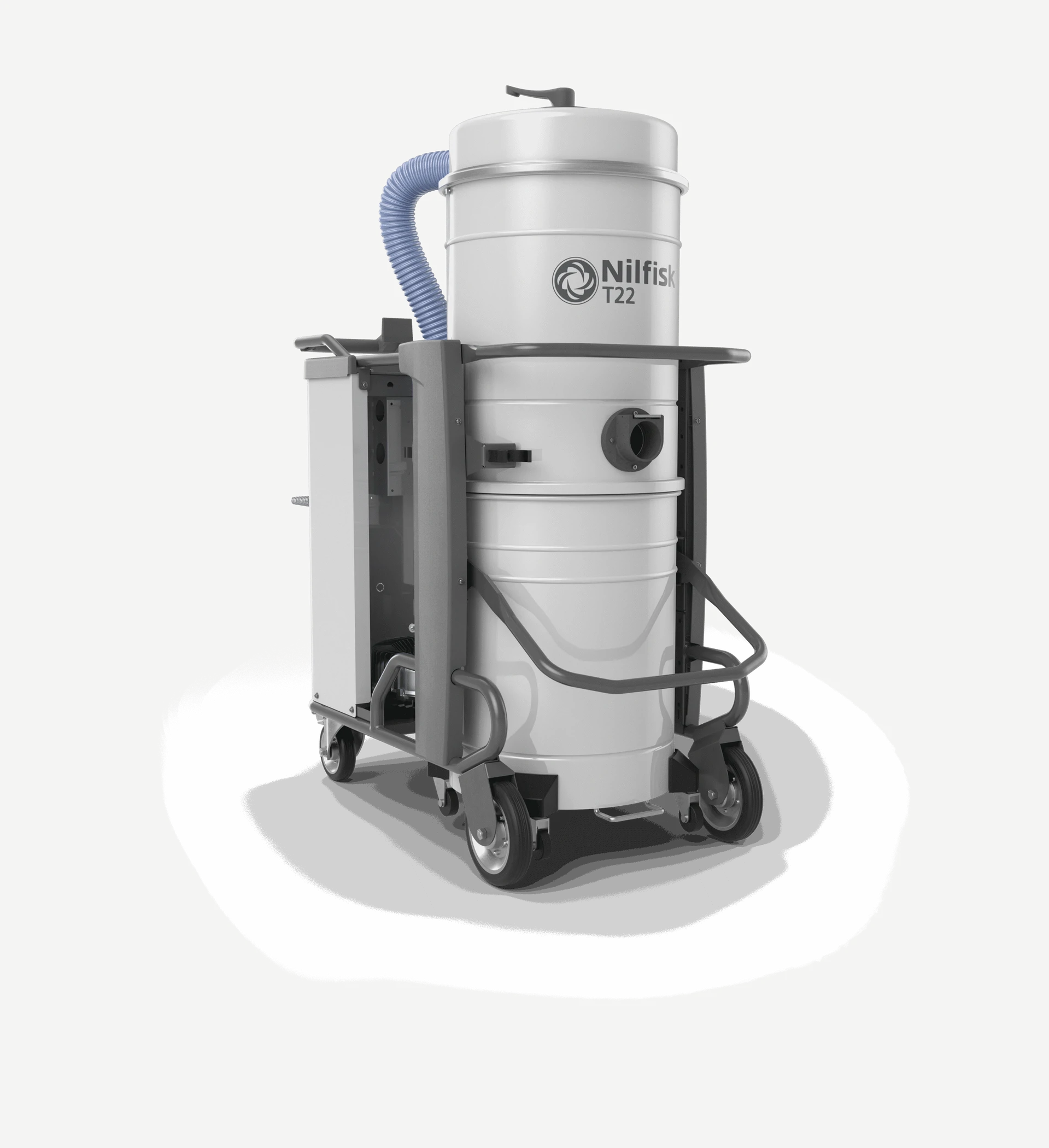 T22 on kolmivaiheinen teollisuusimuri märkä- ja kuivaimurointiin.