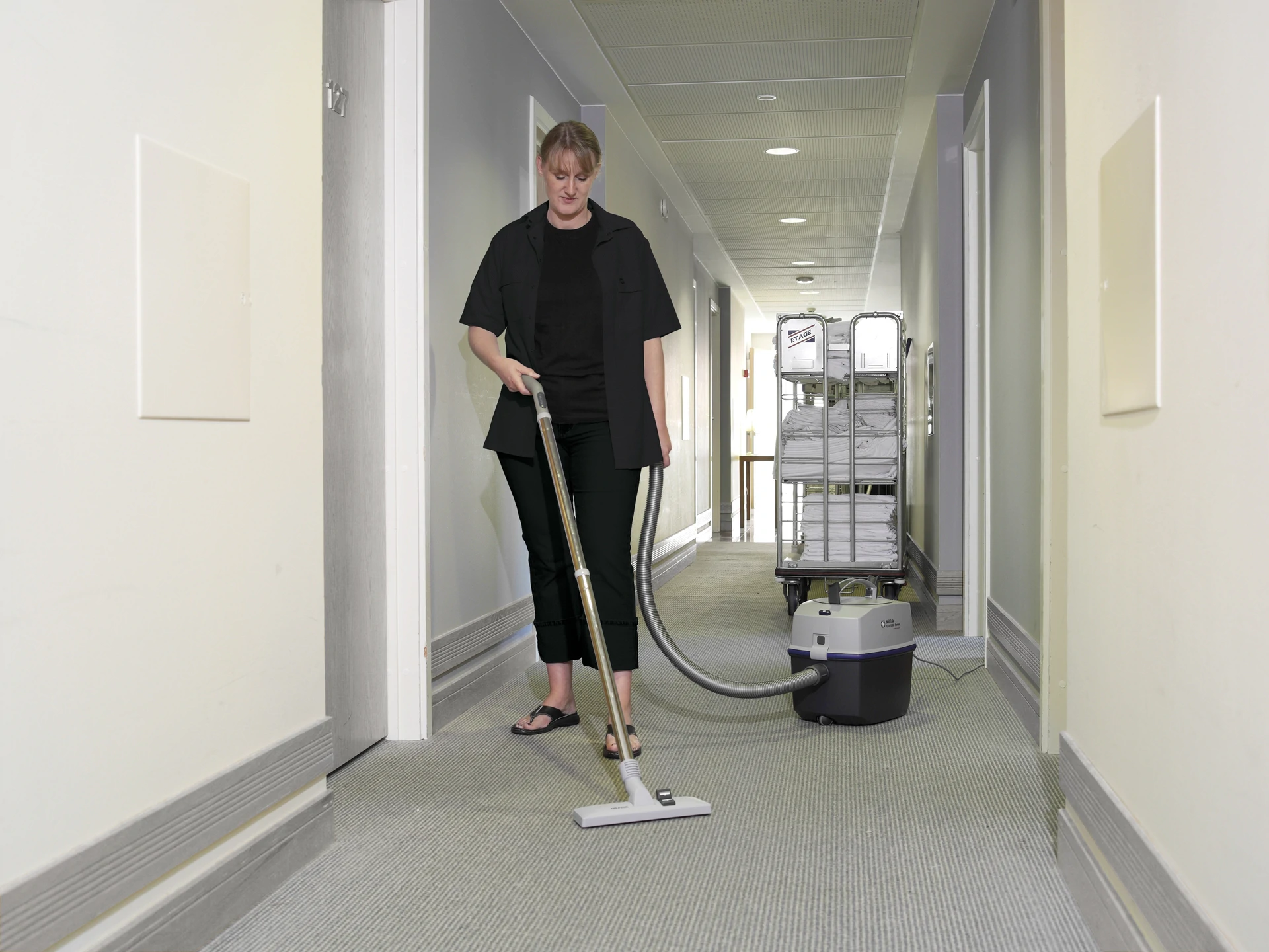La série d'aspirateurs GD1000 constitue le choix idéal pour le nettoyage professionnel des moquettes et sols durs. Cette série offre des fonctions uniques : prise en main ergonomique, stockage du câble autour de la poignée, compacité, capacité du sac et filtres. Cette série est robuste et durable