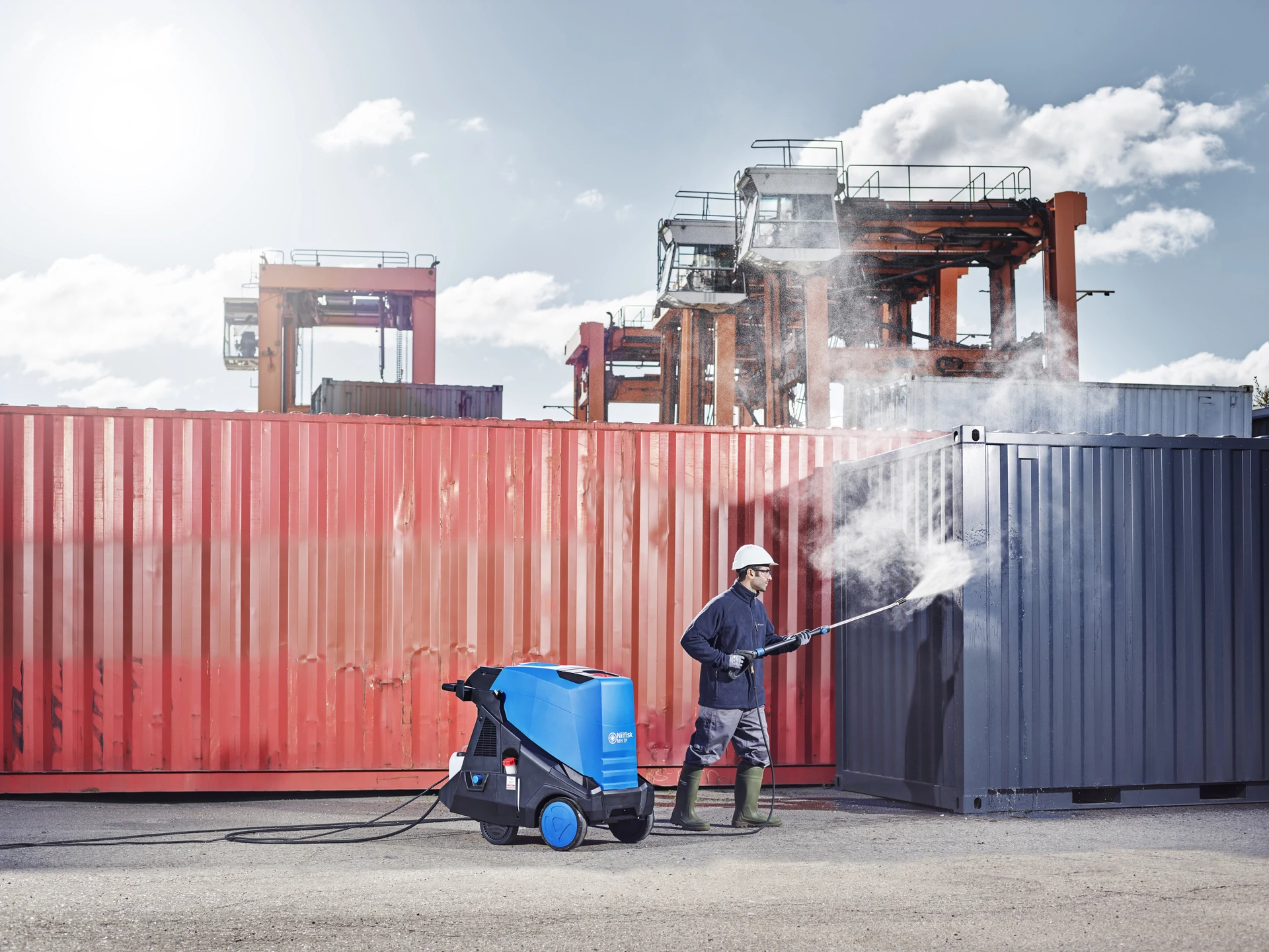 The high power MH 8P combines high pressure and high water flow for routine cleaning of large amounts of dirt in the agriculture, construction, transport or industrial segments. The MH 8P combines high cleaning effect with high rinsing and flushing effect.