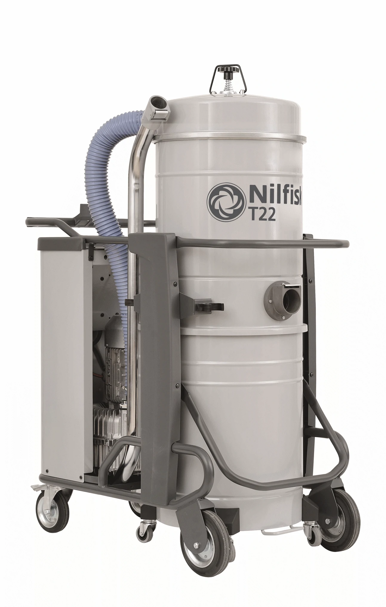 Le modèle Nilfisk T22 est un aspirateur industriel pour liquides et solides. Il est disponible avec une cuve de 50 ou 100 litres ou avec le système Longopac pour vidange directe dans un sac (GU). Egalement disponibles en option filtre absolu HEPA, Filtre catégorie "M", plaque cyclonique...