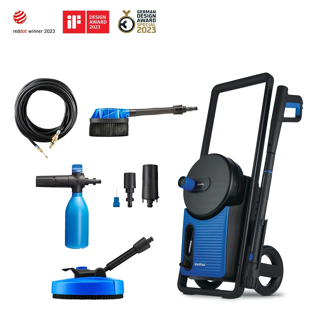 This powerful high pressure washer complete with Multipurpose Gun & Lance and Power Foam Blaster, can tackle all your everyday outdoor cleaning tasks. The induction motor and long-life metal pump provide powerful results on everything from delicate surfaces to ingrained dirt. The 10 m Ultraflex hose has increased flexibility and is easily stored away in the integrated hose reel after use.