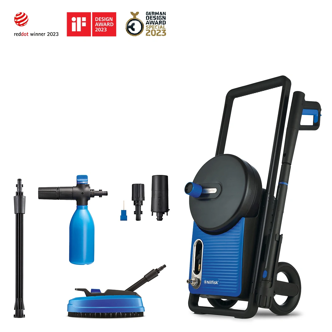This powerful high pressure washer complete with Multipurpose Gun & Lance and Power Foam Blaster can tackle all your everyday outdoor cleaning tasks. The induction motor and long-life metal pump provide powerful results on everything from delicate surfaces to ingrained dirt. The 10 m Steelflex hose has increased flexibility and is easily reeled in using the integrated hose reel.