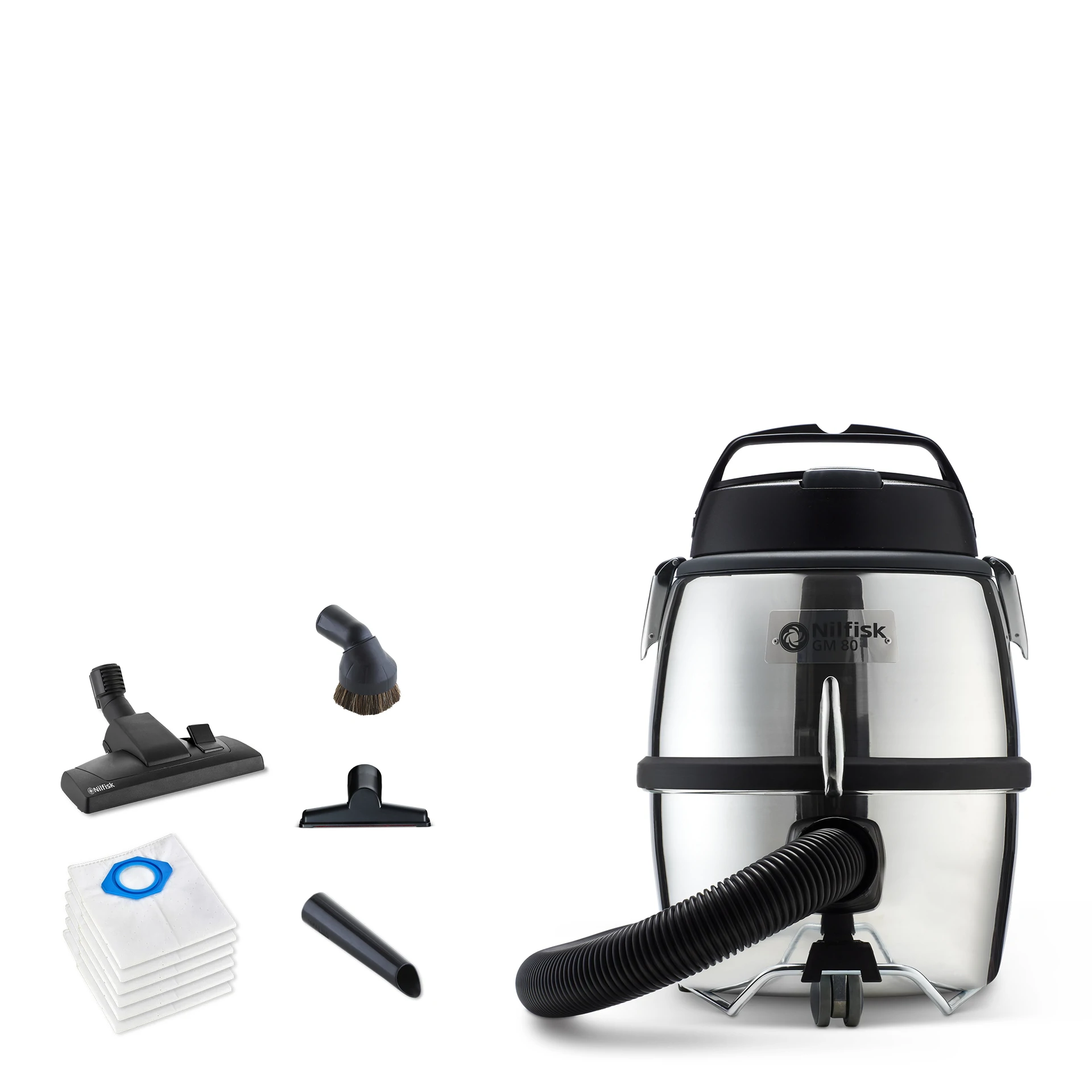 The GM 80C is a heavy-duty quality vacuum cleaner. This vacuum is powerful, robust, and has a large dust bag capacity. Its large wheels allow it to be pulled over wires and other such obstacles.