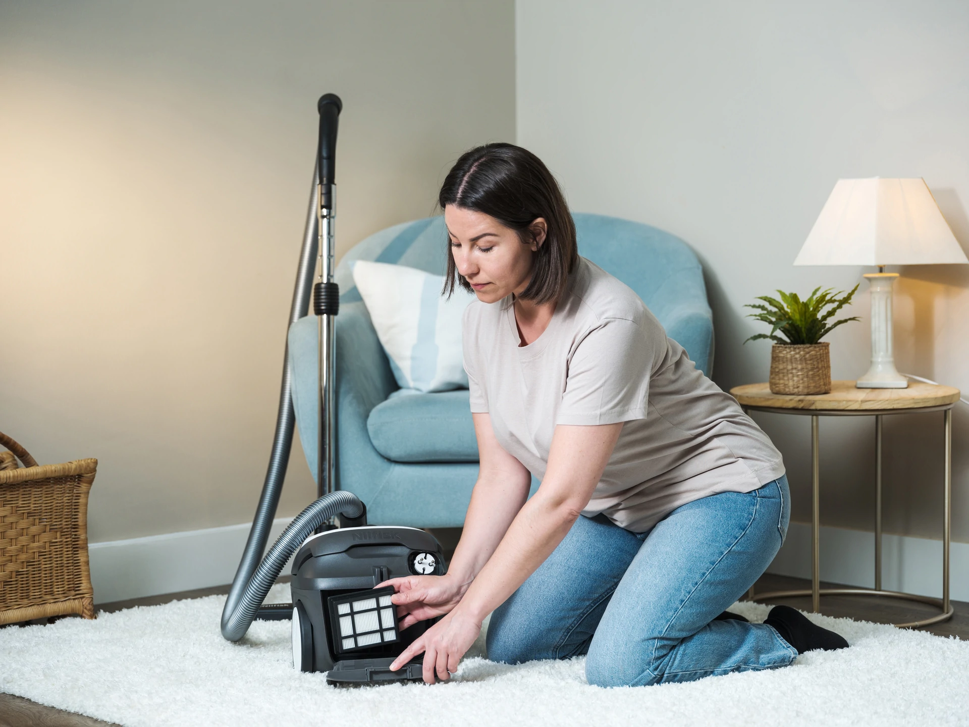 A strong yet power-efficient vacuum that can be stored in conveniently cramped spaces. It sounds too good to be true, but the Nilfisk One range makes it possible. A small vacuum cleaner that can be used on hard floors and carpet, made for modern living.
