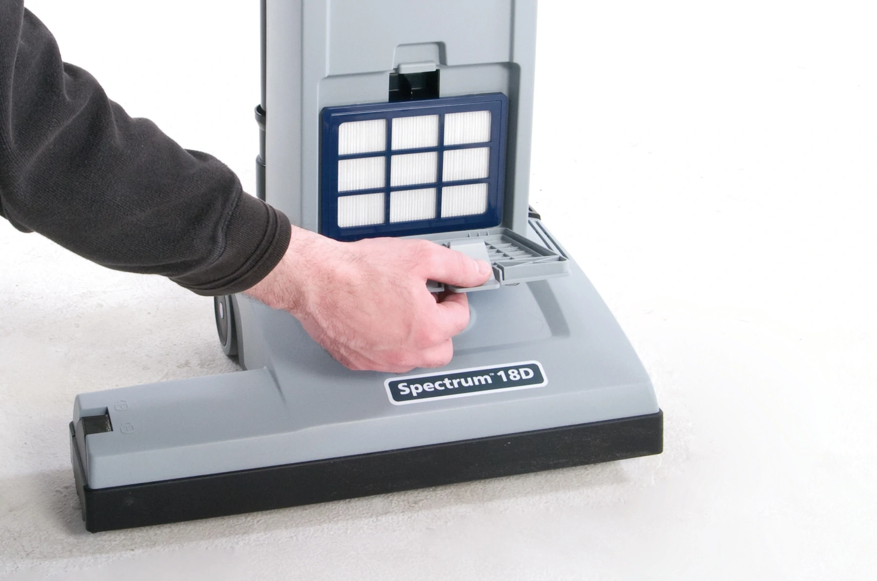 Spectrum™ upright vacuums deliver superior pickup and filtration, with the power to pull dirt and dust from carpets in a single cleaning pass, resulting in greater productivity.