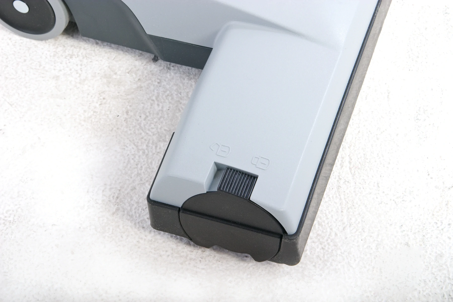 - Easy-release foot pedal turns the brush motor on or off when in the upright position