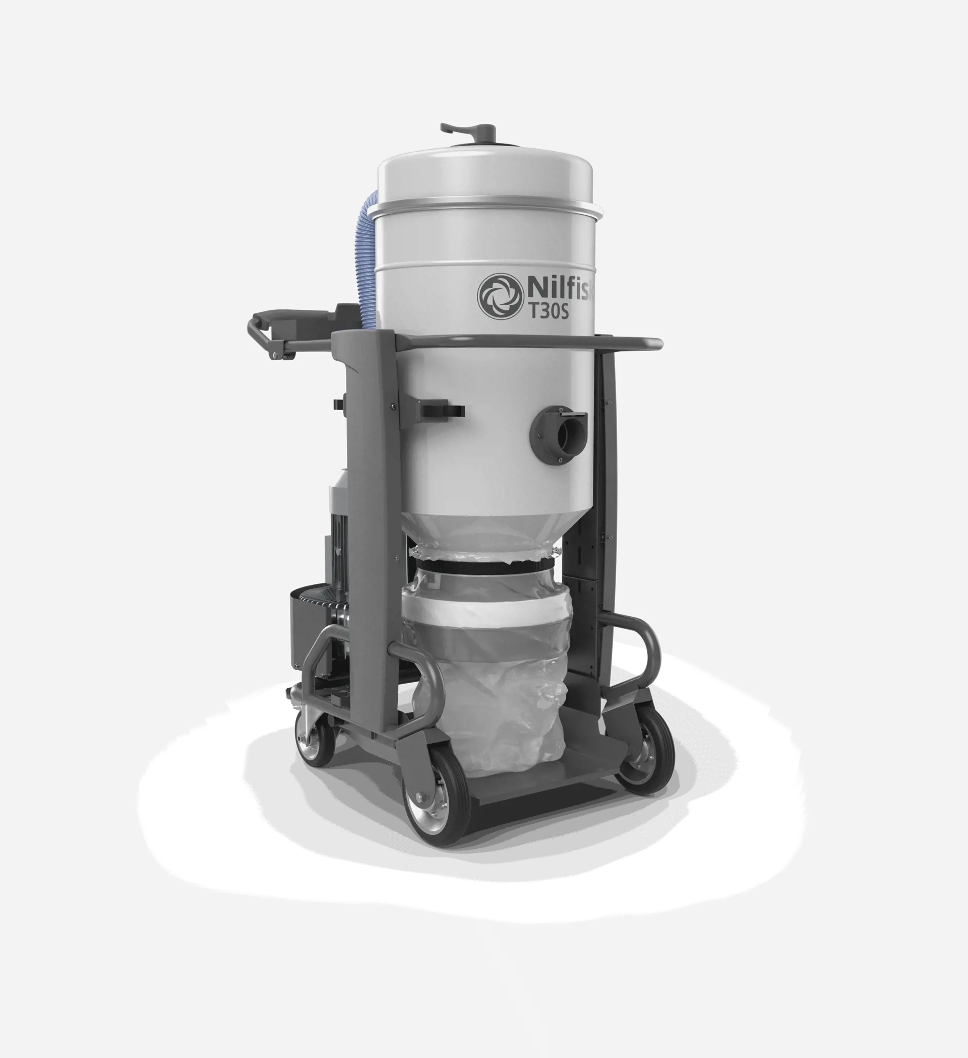 A T30S a sorozat alapgépe, robosztus, háromfázisú gép általános felhasználásra. Választható 100 vagy 50 literes tartállyal, vagy gravitációs ürítési rendszerrel (GV), műanyag zsákkal vagy Longopac zsákrendszerrel. Ergonómikus, erőteljes.