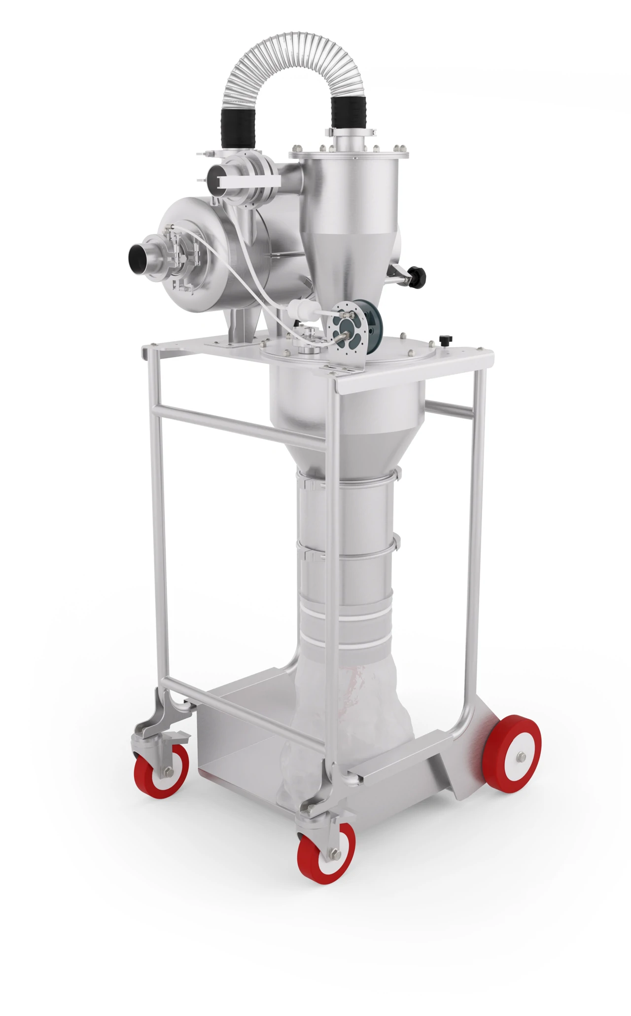 Unità separatrice di contenimento DCU111 Nilfisk, progettata per la raccolta continua di ingredienti farmaceutici attivi nel settore farmaceutico, garantisce prestazioni di contenimento ottimali da OEB3 a OEB5.