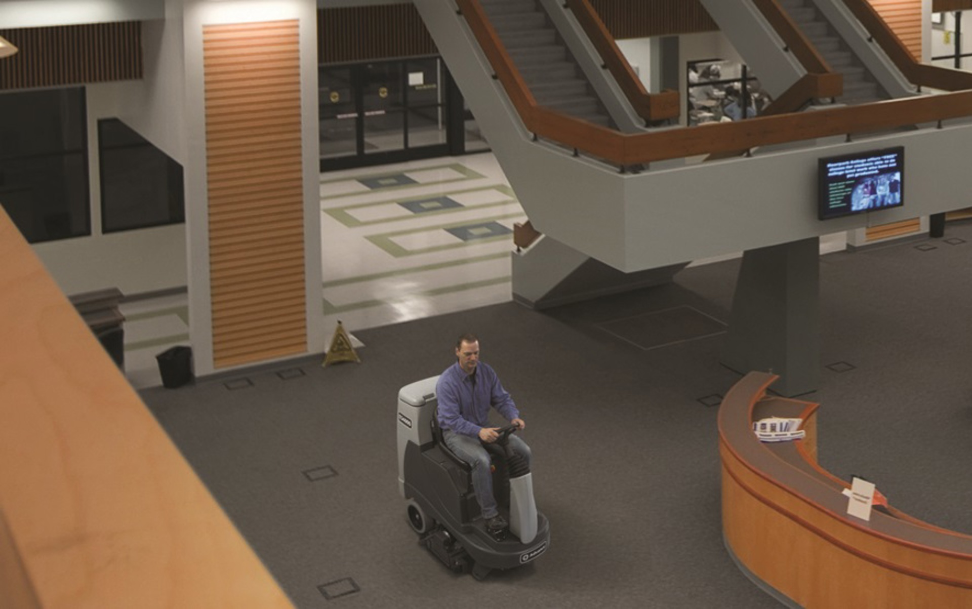 넓은 카펫 바닥에 적합 하며 버핑, 진공청소, 딥크리닝 세척작업이 가능한 탑승형