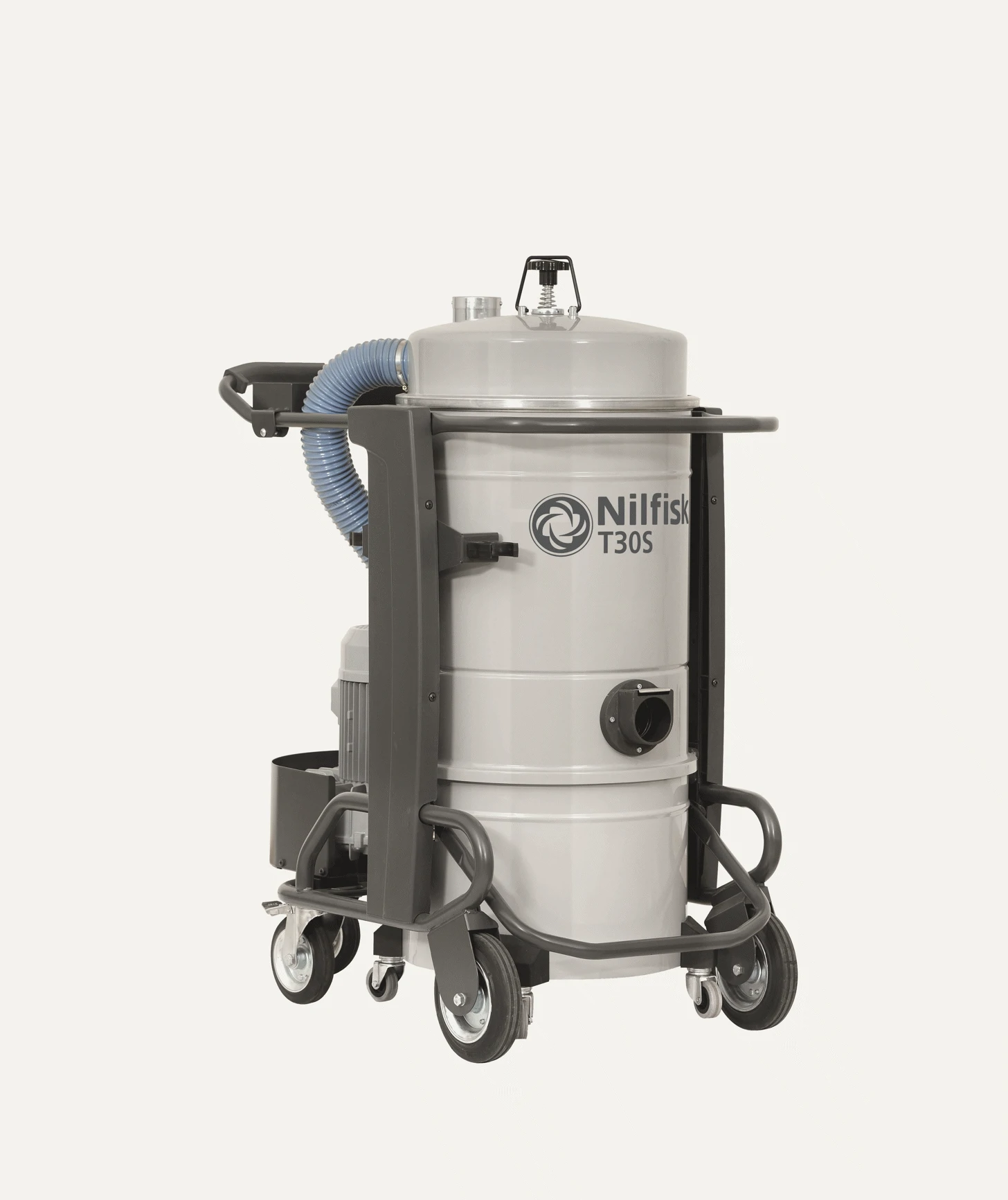 De Nilfisk T30S is een 3 kW driefase industriële stofzuiger voor de industrie. De Nilfisk T30S kan droog en vochtig materiaal opzuigen en is leverbaar met 50 of 100 L stofcontainer. Verschillende afvoersystemen voor stof zijn leverbaar zoals plastic zakken of Longopac (“oneindige zak”).
