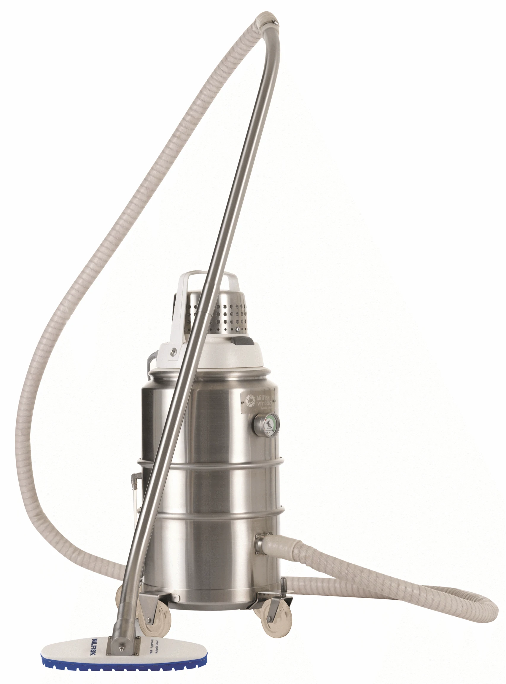 Stofzuigen is een algemeen geaccepteerde procedure in "Cleanrooms" tot klasse ISO 5 (ISO 4). De meeste onderdelen van de Nilfisk IVT 1000 CR kunnen worden gesteriliseerd voor gebruik in de "Cleanroom". De Nilfisk IVT 1000 CR modellen zijn gemaakt van roestvrij staal AISI 316 (wielstel in AISI 304).
